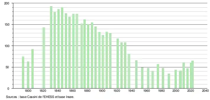- ↑ Fiches Insee - Populations de référence de la commune pour les années 2006, 2007, 2008, 2009, 2010, 2011, 2012, 2013, 2014, 2015, 2016, 2017, 2018, 2019, 2020, 2021 et 2022.