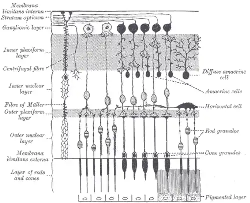 Une cellule ganglionnaire de la rétine est un type de neurone situé dans la rétine de l'œil qui reçoit une information visuelle des photorécepteurs via de nombreux intermédiaires cellulaires tels que les cellules bipolaires, les cellules amacrines, et les cellules horizontales. Les axones des cellules ganglionnaires de la rétine sont myélinisés. La partie myélinisée se situe en dehors de l'œil. Ces axones forment le nerf optique et sont connectés au corps genouillé latéral dans le cerveau.