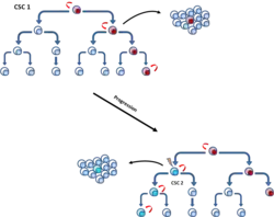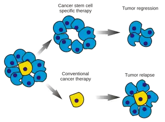 Après une chimiothérapie, les CSCs ayant résisté au traitement sont capables de repeupler la tumeur et de provoquer une rechute. Un traitement supplémentaire visant à éliminer les CSCs en plus des cellules somatiques cancéreuses doit être utilisé pour empêcher cela.