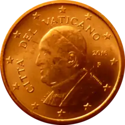 - ↑ Nouvelles faces nationales des pièces en euros destinées à la circulation : État de la Cité du Vatican. In : Journal officiel de l'Union européenne, 2017/C 23/6, 24 janvier 2017.