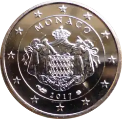 - ↑ Nouvelles faces nationales des pièces en euros destinées à la circulation : Principauté de Monaco. In : Journal officiel de l'Union européenne, 2006/C 316/09, 22 décembre 2006.