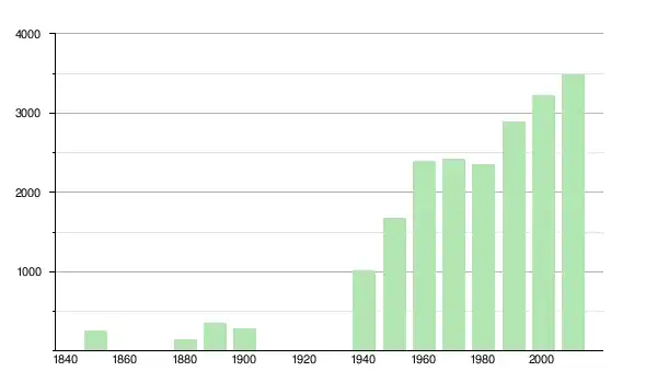 | 1960 | 2 392 | ▲ +43,06 % | |