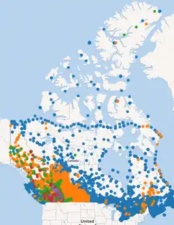 - Pacifique et Yukon : centre de prévision des intempéries à Vancouver, centre de service à Kelowna