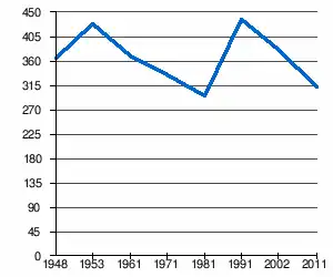 - 1 2 (sr + en) « Livre 20 : Vue d'ensemble comparative de la population en 1948, 1953, 1961, 1971, 1981, 1991, 2002 et 2011, données par localités) » [PDF], pages du recensement de 2011 en Serbie - Institut de statistique de la république de Serbie, (consulté le )