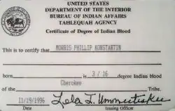 Ce document est produit par le Bureau des affaires indiennes (BIA), après que le demandeur a fourni la liste complète de ses ascendants accompagné des documents juridiques le justifiant comme des certificats de naissance, mariage, etc. ou de l'inscription sur le Dawes Rolls. Ce certificat permet de s'inscrire sur le Dawes Rolls. Le BIA le fait sur la base du Dawes Act de 1887 et de ses amendements successifs, comme le Burke Act de 1906.