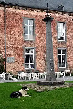 Dans la cour se trouve une colonne pilori, ce qui est rare dans une ferme-château.
