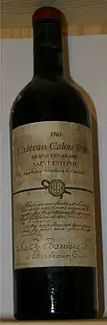 Bouteille de Calon-Ségur 1961, étiquette du négoce.