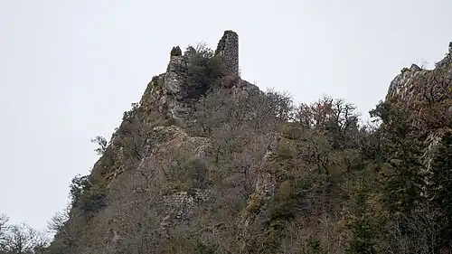 Ruines du château (sur la gauche) | ||||
