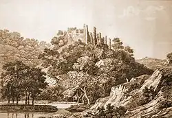 Avec l'essor de l'esthétique « pittoresque » à la fin du XVIIIe siècle, le château, alors repaire de choucas et envahi de lierre, est considéré comme une ruine romantique[12]. Elle est souvent visitée par des artistes et devient une destination touristique prisée : ses illustrations figurent dans de nombreux livres du genre. Le catalogue JV Somers Cocks de Devon Topographical Prints répertorie 45 gravures du château, de la plus ancienne de Samuel et Nathaniel Buck, publiée à Londres en 1734, à celle publiée à Exeter en 1861[13].