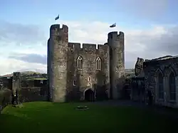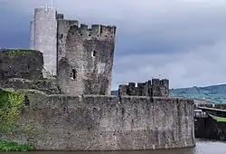 Le château de Caerphilly (en gallois : Castell Caerffili) est un château normand du XIIIe siècle situé au cœur de la ville de Caerphilly, dans le sud du pays de Galles. L'une de ses particularités est de posséder une tour penchée, la Leaning Tower. Le château fut construit par Gilbert de Clare au XIIIe siècle dans le cadre de sa campagne pour conquérir Glamorgan, et fut le témoin de combats intenses entre Gilbert, ses descendants et les dirigeants gallois locaux. Entouré de vastes lacs artificiels - considérés par l'historien Allen Brown être « les moyens de défense en eau les plus élaborés de toute la Grande-Bretagne » - il occupe environ 30 hectares et arrive deuxième dans le classement des plus grands châteaux de Grande-Bretagne. Il est célèbre pour avoir introduit en Grande-Bretagne les moyens de défenses caractéristiques des châteaux concentriques et pour ses grands corps de garde.