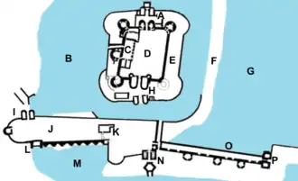 Au-delà de l'île centrale se trouvait l'île occidentale que l'on pouvait probablement atteindre en franchissant des ponts-levis. Cette île est appelée Y Weringaer ou Caer y Werin en gallois, ce qui signifie « le fort du peuple », elle a peut-être été utilisée par la ville de Caerphilly pour se protéger pendant les conflits. Au nord-ouest de l'île occidentale, on pouvait voir le site de l'ancien fort romain, sur environ 3 acres (1,2 ha), ainsi que les vestiges de la fortification construite au même endroit au XVIIe siècle, à l'époque de la guerre civile.