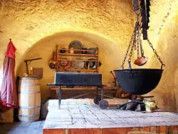 À l'origine, un pont en bois reliait le bergfried à environ 9 mètres au-dessus du sol aux palas situés dans le coin nord-ouest. Des modifications (gothiques) ultérieures ont relié les bâtiments[1]:99.
