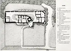 Les plans et dessins des fouilles effectuées en 1981 montrent les différentes parties du château et leurs remaniements[9].