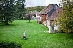 En face du portail d’entrée, de l’autre côté de la route se trouvait l’ancienne forge et une ferme. À 500 mètres au nord, se trouvait la ferme de Lalouvie, des pans de murs subsistent encore aujourd’hui.