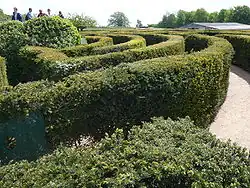Le labyrinthe a été construit à l'extrémité sud du jardin en 1988 à partir de 2 400 ifs communs. Ce labyrinthe a la particularité de ne pas pouvoir se résoudre en mettant sa main contre un des deux murs et de marcher en gardant la main sur le mur jusqu'à trouver la sortie, du fait de la non-connexité des murs du labyrinthe.