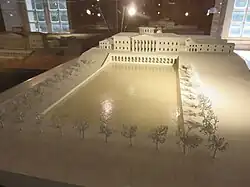 La façade arrière dominait un miroir d'eau, dont elle était séparée par un niveau d'arcades.