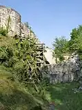 En 1975, en dessous d'une ouverture murée pratiquée dans la barbacane, fut découvert une porte en arc brisé (XIIe siècle) donnant accès à un couloir aménagé dans le roc et, de là, à un escalier[5].