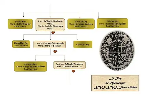 Pierre Le Roy de Montaupin et Barbe de Mondragon eurent trois enfants : Pierre II, qui s’éteignit sans postérité entre 1633 et 1644, Louis René et Charles Le Roy.