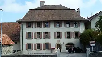 Cet imposant édifice, de volume presque cubique avec ses deux étages sur rez-de-chaussée, frappe par son majestueux comble à la Mansart qui le distingue de toutes les autres constructions du village.