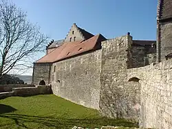 Vers 1100 (et en tous cas dans la première moitié du XIIe siècle), le côté est du château fut considérablement renforcé : d'abord une première enceinte avec, au nord comme au sud, une tour octogonale. Ces deux tours avaient non seulement une fonction défensive, mais aussi politique. La crête de la muraille a été visiblement arasée puis rehaussée d'un second rempart. L'ensemble se présente comme une fortification contre les attaques venues de l'est, dont on trouve fort peu d'exemples avant l'avènement des Hohenstaufen : citons le château de Sachsenstein à Walkenried, dans le Harz (vers 1070), le château d'Alteburg à Mallendorf et celui de Wiprechtsburg à Groitzsch (vers 1080).