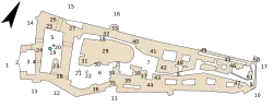 - ↑ Selon le responsable du château chargé de l'entretien, le territoire du château occupe, avec ses dépendances et ses jardins, une surface de 43 hectares ; le château lui-même occupe une surface au sol de 9 hectares.