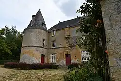 En l'absence de pont-levis et de fossés, une bretèche défend l'entrée.