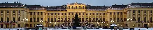La défaite ottomane de 1683 ouvrit une période de paix propice aux grands travaux. L'empereur Léopold Ier confia à l'architecte Johann Bernhard Fischer von Erlach la conception d'un nouveau château qui se voulait le Versailles autrichien. Le premier projet livré en 1693, trop utopique et excessivement cher, ne fut pas retenu. Puis vint une idée plus petite et réaliste. La construction débuta en 1696, soit trente-deux ans après les premiers travaux entrepris à Versailles par Le Vau. En 1699, trois ans après, les premières festivités se tenaient dans la partie centrale du palais.