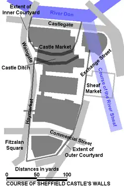 - ↑ « Sheffield Castle Archaeological Investigations » [archive du ], Sheffield City Council website, Sheffield City Council (consulté le )