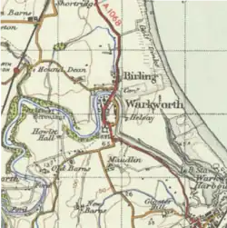 Le château de Warkworth est un bâtiment médiéval en ruine, situé dans la ville homonyme, dans le comté anglais du Northumberland. La ville et le château se trouvent sur une boucle formée par la Coquet, à moins d'un kilomètre de la côte nord-est de l'Angleterre.