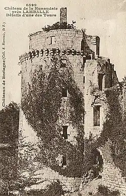 - ↑ Association bretonne et Union régionaliste bretonne, « Introduction à la visite des ruines de la Hunaudaye », Comptes rendus, procès-verbaux, mémoires... : agriculture, archéologie, , p. 52 (lire en ligne, consulté le ).