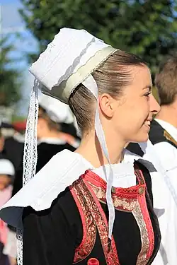 Coiffe bretonne traditionnelle à quatre côtés du Pays Rouzig