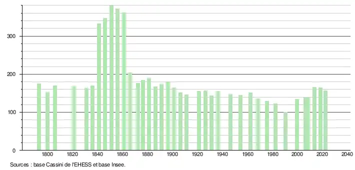 Au dernier recensement de 2022, la commune comptait 157 habitants.