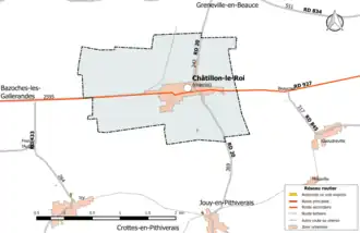 Au , Châtillon-le-Roi est catégorisée commune rurale à habitat dispersé, selon la nouvelle grille communale de densité à sept niveaux définie par l'Insee en 2022[23]. Elle est située hors unité urbaine[24]. Par ailleurs la commune fait partie de l'aire d'attraction de Pithiviers, dont elle est une commune de la couronne[Note 2],[24]. Cette aire, qui regroupe 27 communes, est catégorisée dans les aires de moins de 50 000 habitants[25],[26].