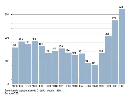 Le graphique suivant résume l'évolution de la population de Châtillon entre 1850 et 2008[4] :