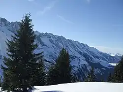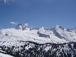 La chaîne des Aravis est une chaîne de montagnes située dans les Préalpes à cheval entre la Haute-Savoie (versant ouest) et la Savoie (versant est). Son plus haut sommet est la pointe Percée (2 750 m) que se partagent les communes du Grand-Bornand, de Sallanches et du Reposoir. L'extrémité septentrionale du massif est appelée chaîne du Reposoir[1],[2].