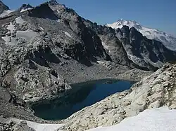 Vue sur le lac glaciaire de Triad Lake dans les North Cascades avec, à l'arrière-plan à droite, le pic Glacier.
