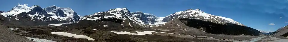 La frontière orientale de la chaîne est la rive occidentale de la rivière Sunwapta depuis la frontière du parc national de Banff et de Jasper, et s'étend au nord jusqu'aux chutes Sunwapta. La frontière occidentale de la chaîne est délimitée par la vallée de la rivière Athabasca et à l'est par Warwick Mountain. La vallée rétrécit au fur et à mesure qu'elle se rapproche de la ligne de partage des eaux continentale, et sépare le mont Columbia du mont King Edward, ce dernier ne faisant pas partie du chaînon Winston-Churchill.