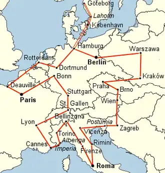 La deuxième partie du concours consistait en un rallye de 7363 km sur l’Europe selon le parcours Berlin - Varsovie - Cracovie - Prague - Brno – Vienne - Zagreb - Postumia - Vicence - Rimini - Rome - Florence - Bellinzone - Turin – Albengue – Imperia - Cannes - Lyon - Saint-Gall - Stuttgart - Bonn - Paris - Deauville – Rotterdam - Dortmund – Hambourg - Copenhague – Laholm - Göteborg - Laholm - Copenhagen - Hambourg – Berlin.