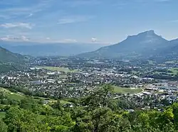 Vue d'ensemble de la cluse de Chambéry depuis le Relais du Mont du Chat. | |
