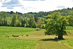 L'occupation des sols de la commune, telle qu'elle ressort de la base de données européenne d’occupation biophysique des sols Corine Land Cover (CLC), est marquée par l'importance des territoires agricoles (85,7 % en 2018), une proportion sensiblement équivalente à celle de 1990 (84,9 %). La répartition détaillée en 2018 est la suivante : zones agricoles hétérogènes (49,2 %), prairies (36,5 %), forêts (11,8 %), zones urbanisées (2 %), espaces verts artificialisés, non agricoles (0,6 %)[12].