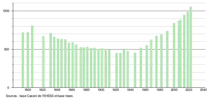 - ↑ Population municipale de référence en vigueur au 1er janvier 2025, millésimée 2022, définie dans les limites territoriales en vigueur au 1er janvier 2024, date de référence statistique : 1er janvier 2022.