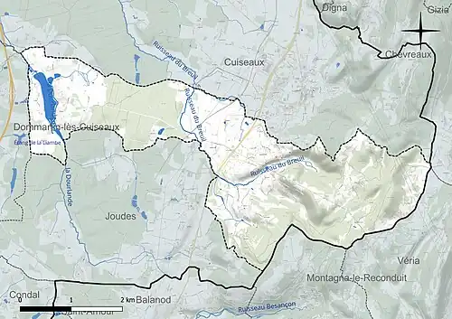 Les communes limitrophes sont Chevreaux, Cuiseaux, Dommartin-lès-Cuiseaux, Joudes, Montagna-le-Reconduit et Véria.