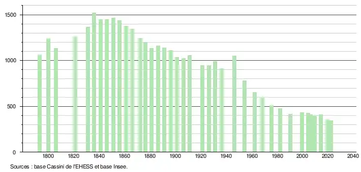 - ↑ Fiches Insee - Populations de référence de la commune pour les années 2006, 2007, 2008, 2009, 2010, 2011, 2012, 2013, 2014, 2015, 2016, 2017, 2018, 2019, 2020, 2021 et 2022.