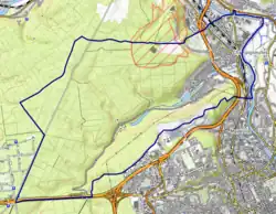 L'occupation des sols de la commune, telle qu'elle ressort de la base de données européenne d’occupation biophysique des sols Corine Land Cover (CLC), est marquée par l'importance des forêts et milieux semi-naturels (78,8 % en 2018), une proportion sensiblement équivalente à celle de 1990 (78,7 %). La répartition détaillée en 2018 est la suivante : forêts (74,8 %), zones urbanisées (10,9 %), zones industrielles ou commerciales et réseaux de communication (6,3 %), milieux à végétation arbustive et/ou herbacée (4 %), cultures permanentes (1,3 %), mines, décharges et chantiers (1 %), espaces verts artificialisés, non agricoles (0,9 %), prairies (0,7 %), terres arables (0,1 %)[19]. L'évolution de l’occupation des sols de la commune et de ses infrastructures peut être observée sur les différentes représentations cartographiques du territoire : la carte de Cassini (XVIIIe siècle), la carte d'état-major (1820-1866) et les cartes ou photos aériennes de l'IGN pour la période actuelle (1950 à aujourd'hui)[Carte 2].