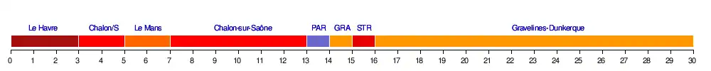 | Paris-Levallois | 2 | 3 | 6 | 9 | 6 | 6 | 7 | 5 | 5 | 4 | 2 | 2 | 2 | 1 | 2 | 5 | 6 | 6 | 6 | 6 | 8 | 7 | 8 | 7 | 8 | 8 | 8 | 11 | 12 | 12 | 1 | 0 |