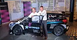 - ↑ (en) Hal Ridge, « First Projekt E electric rallycross car unveiled at Latvian WRX », sur autosport.com, (consulté le ).