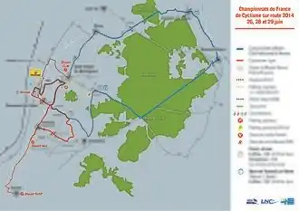 Carte des épreuves des Championnats de France de cyclisme sur route 2014.