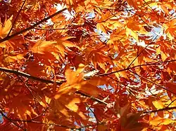 Durant les mois d'automne, des arbres feuillus et des fougères connaissent un changement de couleur des feuilles et des frondes avant qu'elles ne tombent. Ce changement de couleurs, qui existe chez beaucoup d'arbres des régions tempérées[2], est souvent appelé couleurs automnales. Il est associé au dernier stade du développement de la feuille, la sénescence qui se caractérise par de véritables bouleversements biochimiques.