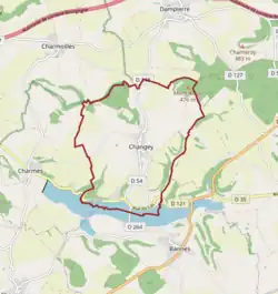 Un plan d'eau complète le réseau hydrographique : le réservoir de Charmes, d'une superficie totale de 161,5 ha (29,3 ha sur la commune)[Carte 1],[3].