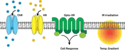 D'autres laboratoires ont travaillé sur la combinaison de la stimulation de ChR2 avec l'imagerie calcique (par FRET) pour des expériences tout optique[34], la cartographie des circuits neuronaux à longue portée[35] et locaux[36], l'expression de ChR2 à partir d'un locus transgénique - directement[37] ou dans le paradigme conditionnel Cre-lox[36] – ainsi que l'excitation à deux photons de ChR2, permettant l'activation de cellules individuelles[38],[39],[40].